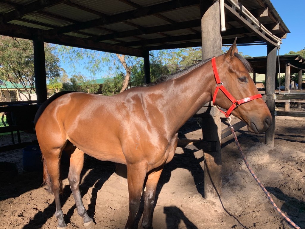 I Am Bolt has settled in great. He is working well and he is an eating machine. He had a foot abscess come out at the end of last week, causing him to miss a couple of days cantering but he is fine now. He is ready to start some 3/4 pace tomorrow morning.