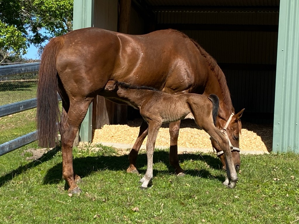 Millijule retired from our stables last year and we were delighted to see her welcome a beautiful filly foal this week. Both Millie and her new baby are doing great.